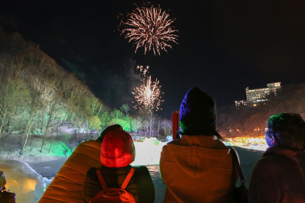 - 氷のオブジェと花火大会を一度に満喫「層雲峡氷瀑まつり」