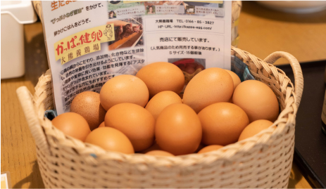 豊かな環境で育った食材をご利用される方にも楽しんでいただけるよう、料理には地元の「大熊養鶏場」様のとれたて卵。