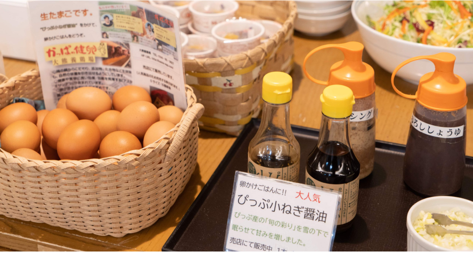 その他、バイキング形式で、比布町名物「大熊養鶏場」様の生卵も食べ放題です。